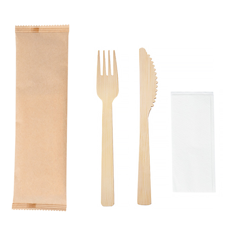 3 in 1 Wrapped Disposable Bamboo Knife Fork Napkin Set