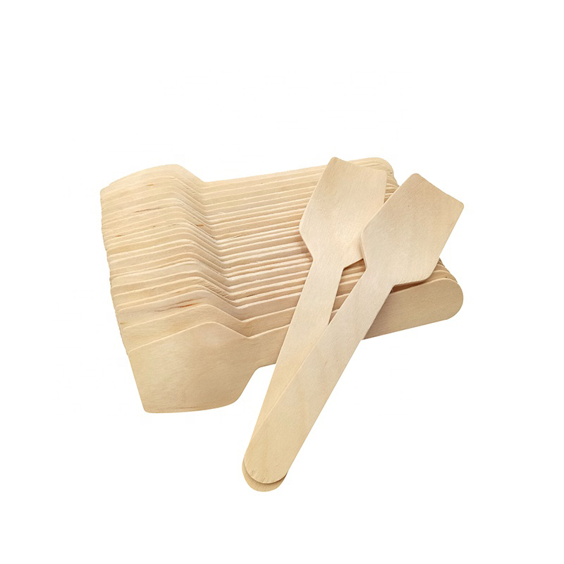 Disposable Wooden Cutlery Set Compostable Birch Wood Bio Degradable Alternative to Plastic 100mm Spoons